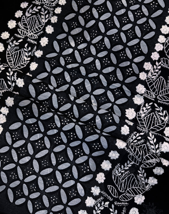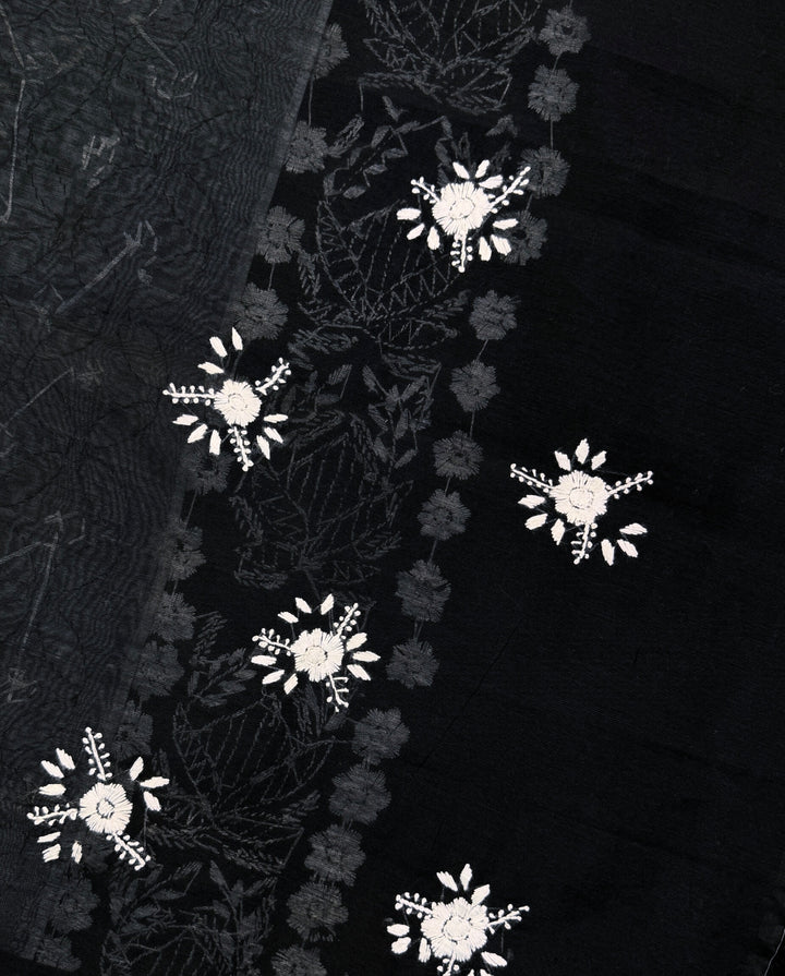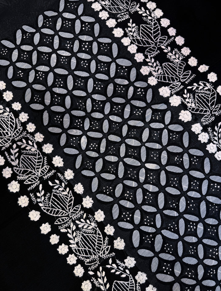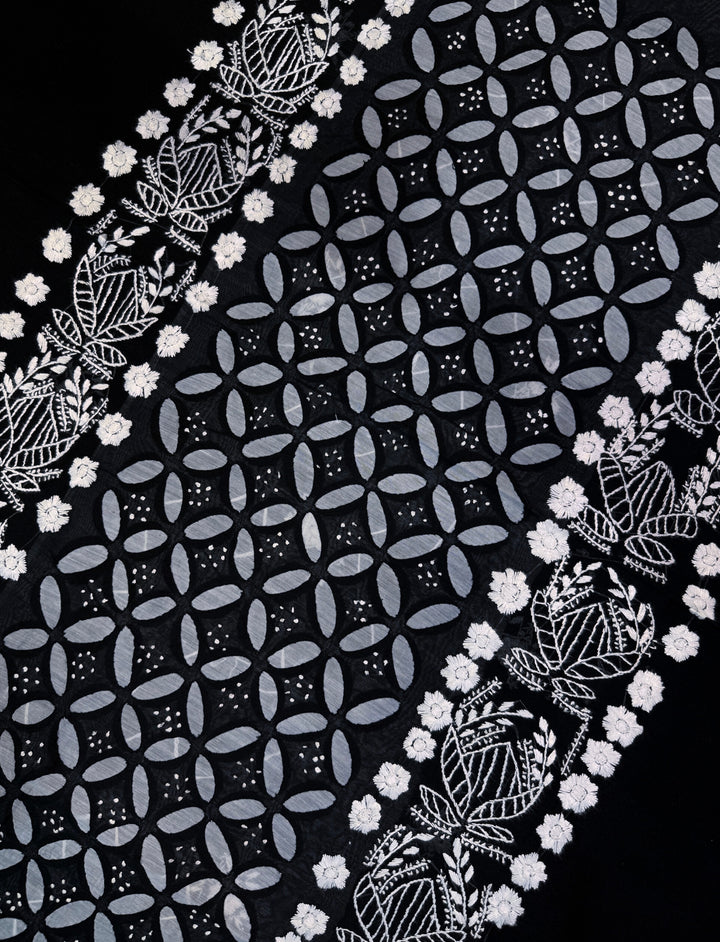 - Craft: Dwell in the beauty of this gorgeous Black & White attire based on Khaddi Silk - Shirt featuring handmade applique work in the mid panel and alluring Parsi Work at the side panels.