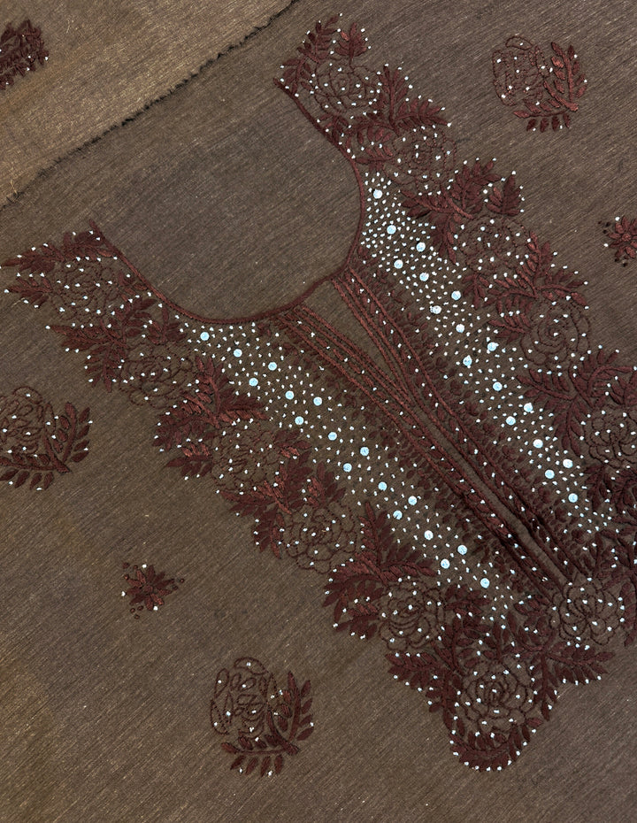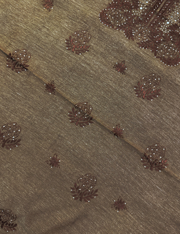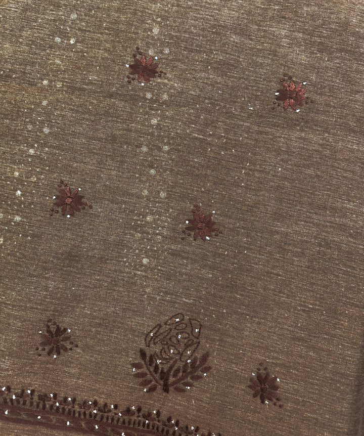 The Dupatta is adorned with gracefully scattered floral motifs, with Kamdani spray completing the ensemble with understated elegance. - Fabric: Khaddi Silk