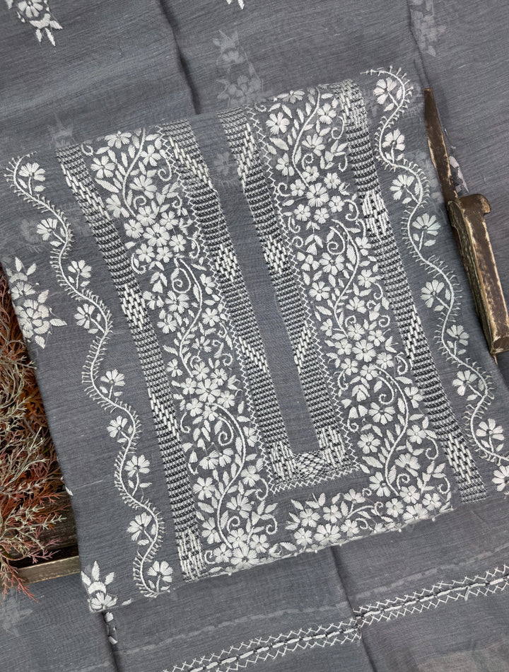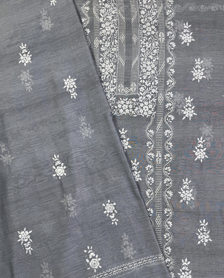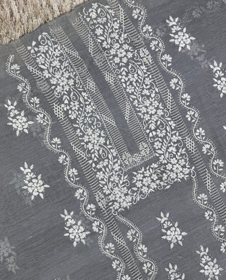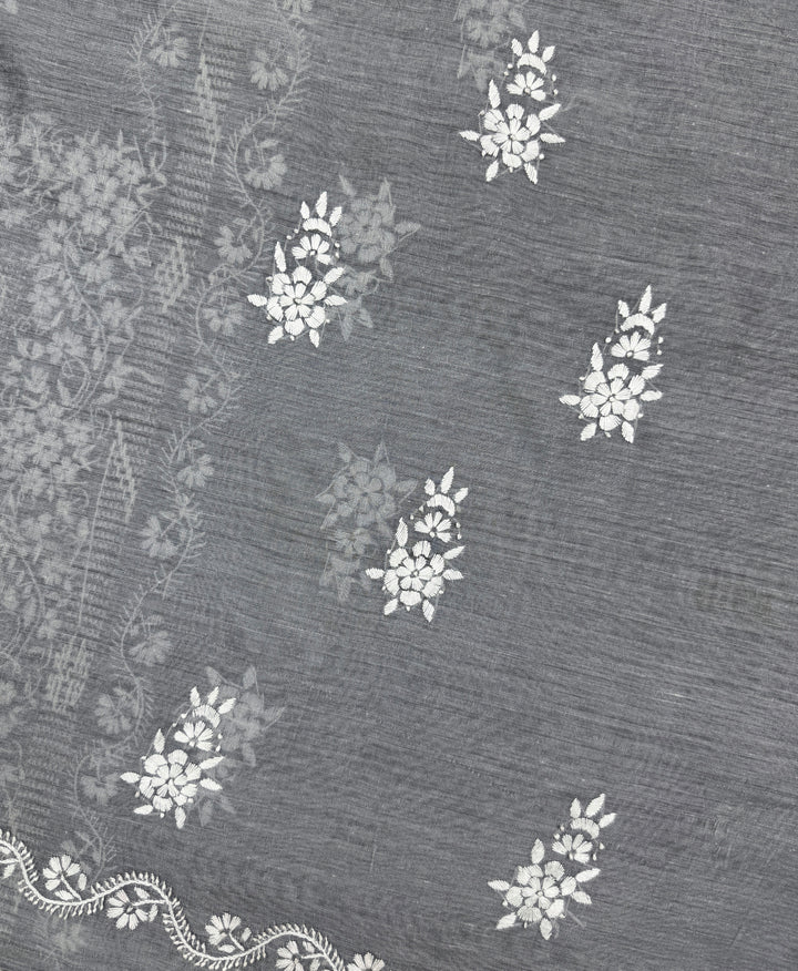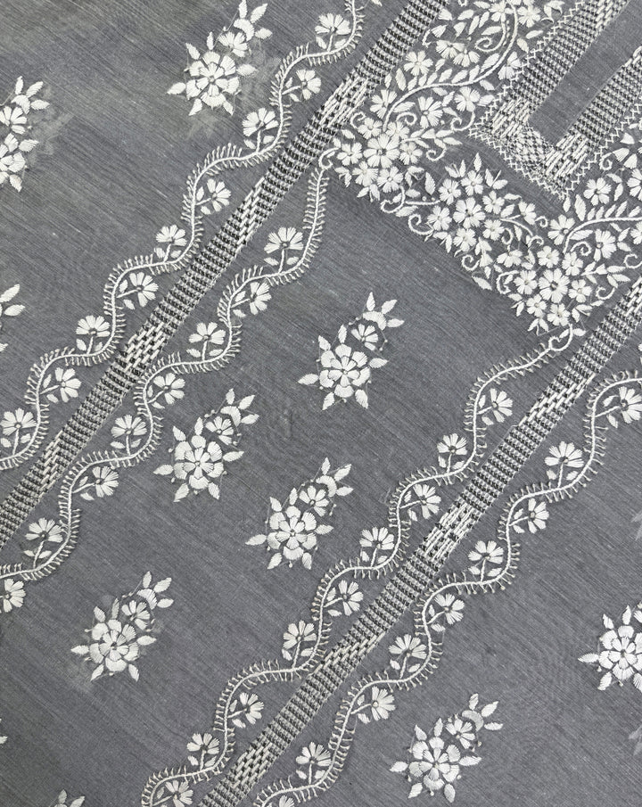 The Shirt is paired with separate embroidered sleeves finished with a refined border, and the back carries subtle floral motifs for a graceful touch. The dupatta is enhanced with a soft spray of floral motifs, framed with an elegant Tarkashi border along the pallus. - Fabric: Khaddi Silk