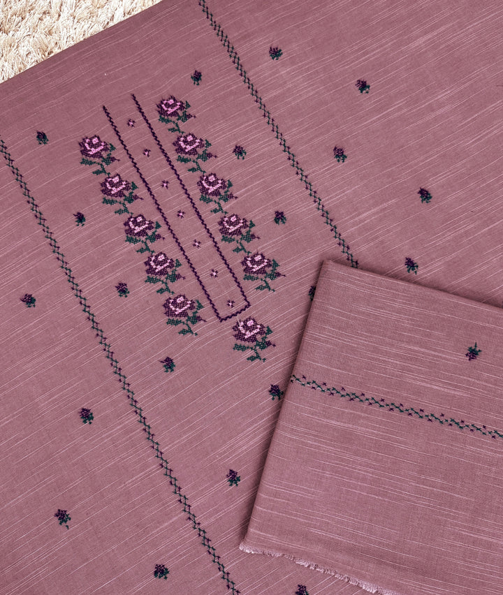 Dupatta has a delicate border on its pallu’s with floral motifs adorned all over it and accompanied by a plain matching trouser. - Fabric: French Khaddar