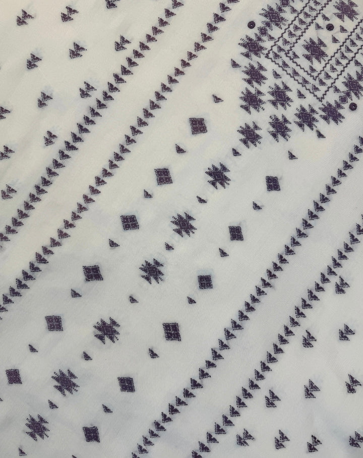 Dupatta has a delicate floral motifs spray all over it and accompanied by a plain matching trouser. - Fabric: Stone Linen