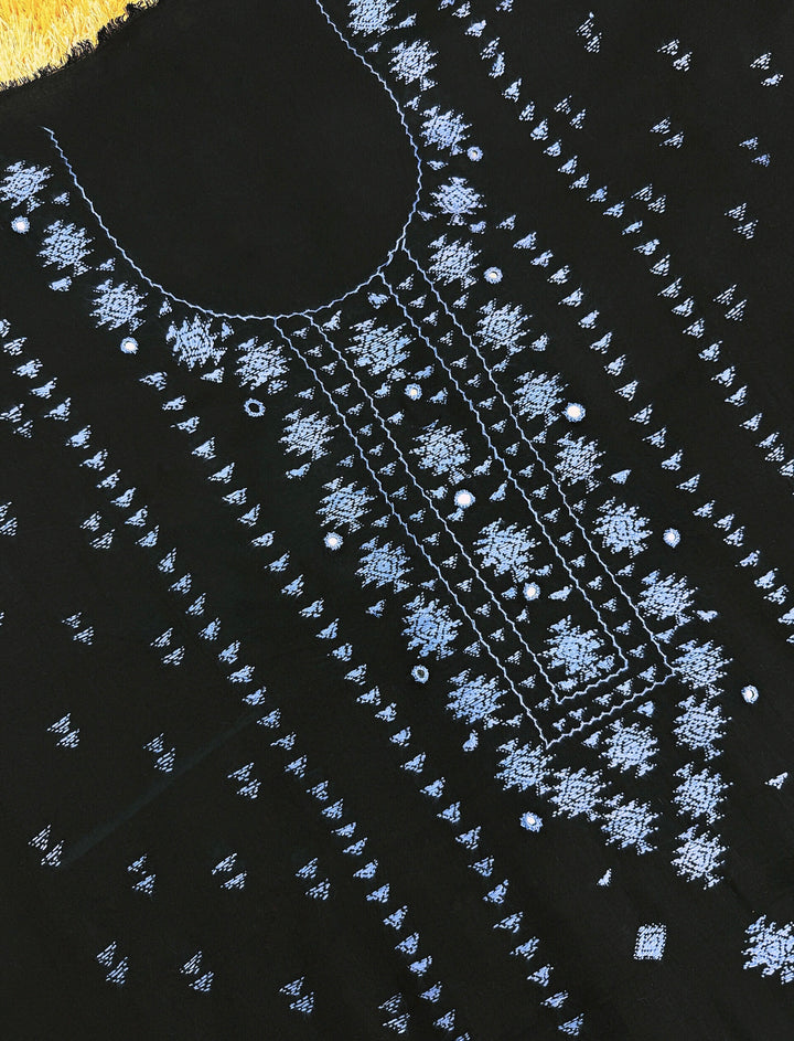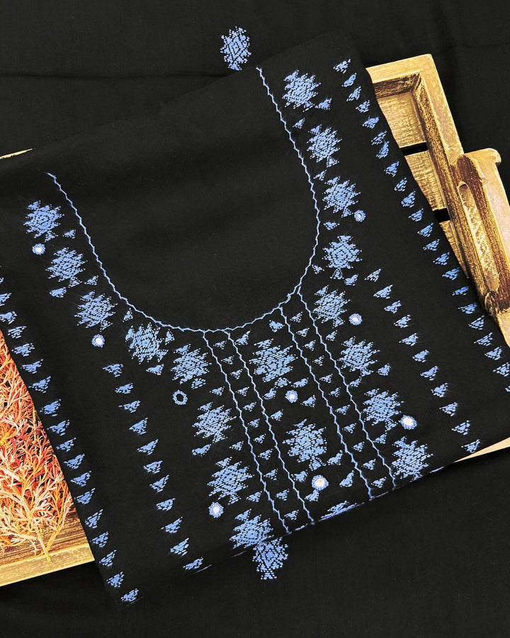- Craft: The Shirt has a traditional neckline in Banarsi Tanka embellished with mirrors. Delicate motifs on the mid panel, intricate embroidery on the side panels are both crafted in banarsi tanka. Paired with separate embroidered sleeves and a plain back.