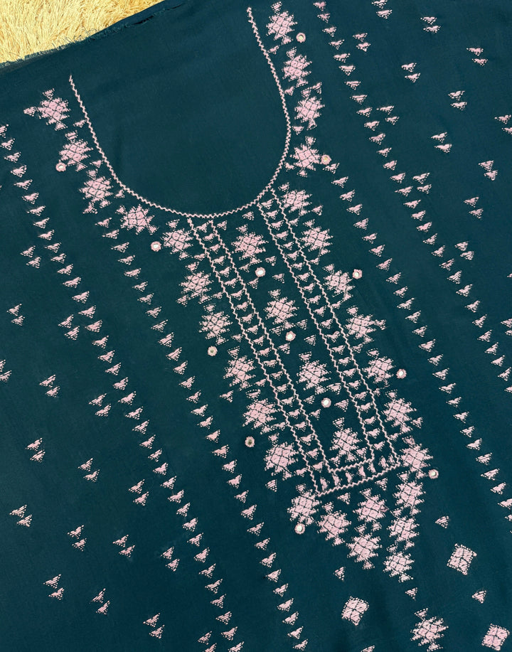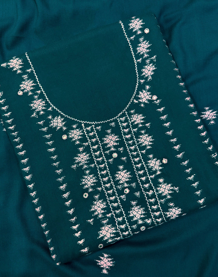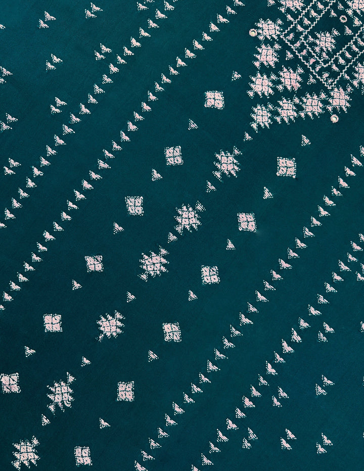- Craft: The Shirt has a traditional neckline in Banarsi Tanka embellished with mirrors. Delicate motifs on the mid panel, intricate embroidery on the side panels are both crafted in banarsi tanka. Paired with separate embroidered sleeves and a plain back.