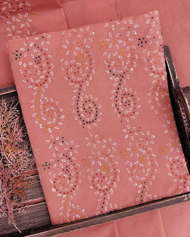 - Craft: Slay in this gorgeous attire- a two piece Shirt & Dupatta with intricate French knot detailing. Shirt features French knot embroidered motifs crafted in white and multi hues that gives a colourful vibe to this outfit, paired with a Plain back balancing the overall look. Shirt comes with embroidered sleeves. Dupatta of this outfit has motifs crafted in french knot all over it.