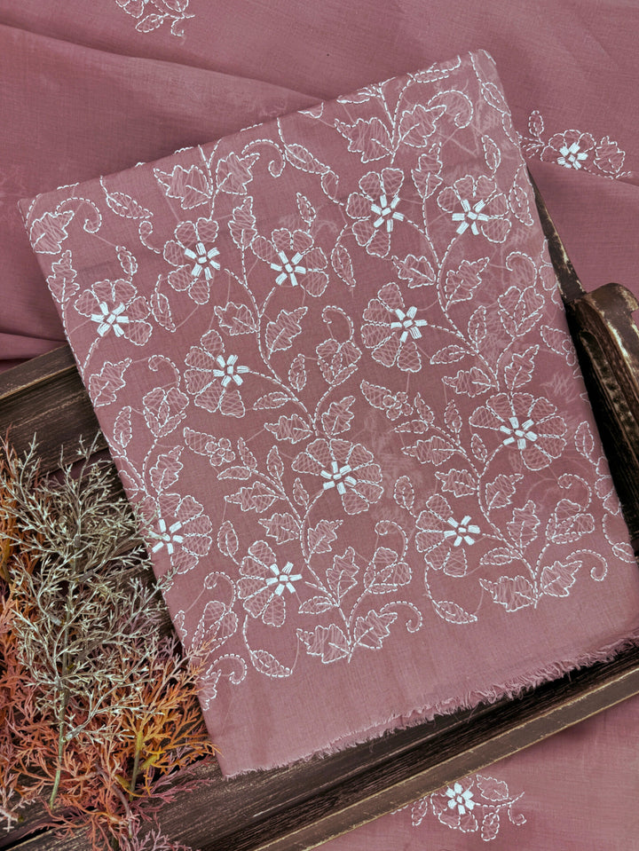 Craft: This elegant Chikankari ensemble features delicate floral motifs scattered across the front and back of the shirt, finished with a solid embroidered border at the front.