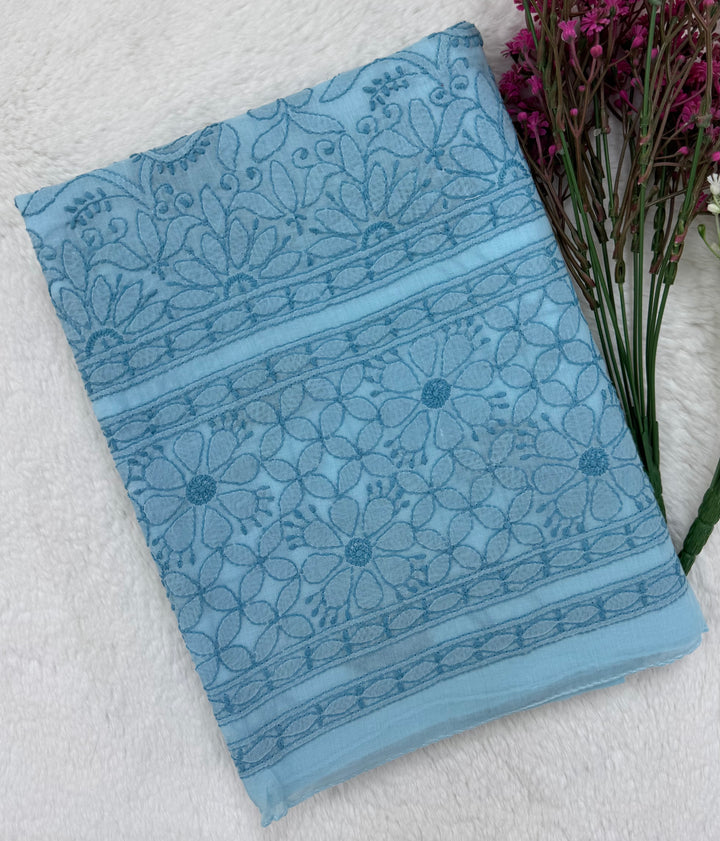 Craft: Stand out in this Chikankari ensemble that is unique in its own kind due to its self-coloured embroidery on it.