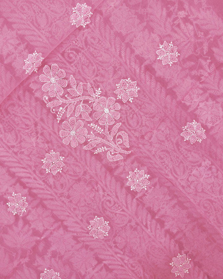 Back of the shirt and sleeves are embellished with floral motifs all-over it. - Fabric: Swiss Lawn