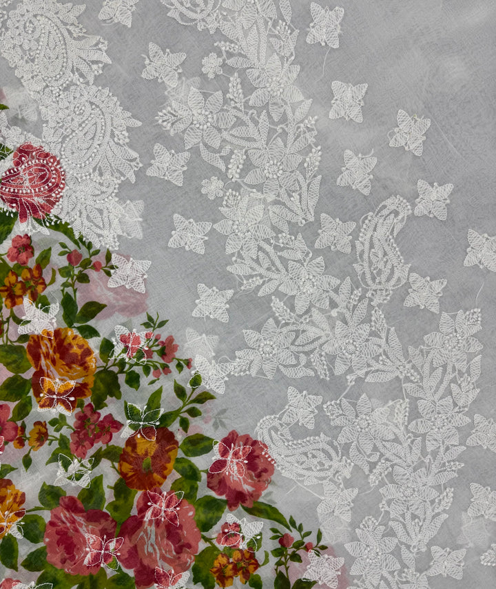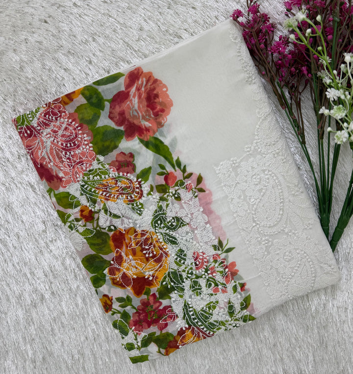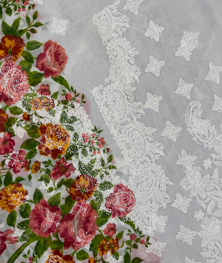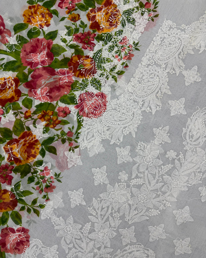 - Craft: Immerse yourself in the beauty of this enchanting Chikankari Kurta with exclusive Digital Printing. One side of the Kurta has delicate White Chikankari embroidery all-over it, a beautiful neckline in mid contemplated with Digital Printing in bright hues on the other side making this Kurta an absolute class. The back of the Kurta has floral motifs on it accompanied by separate embroidered sleeves.