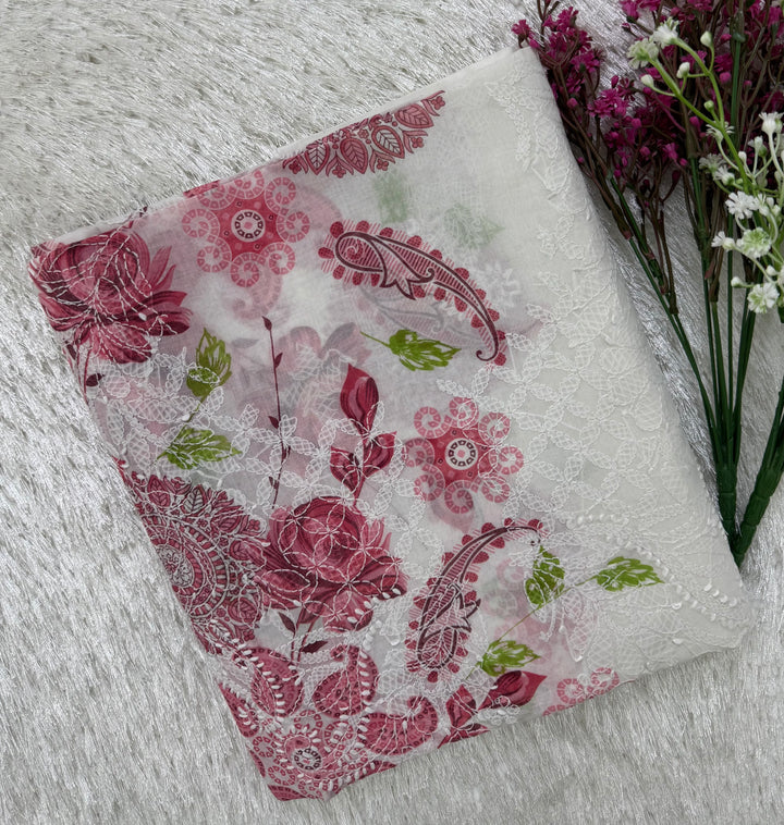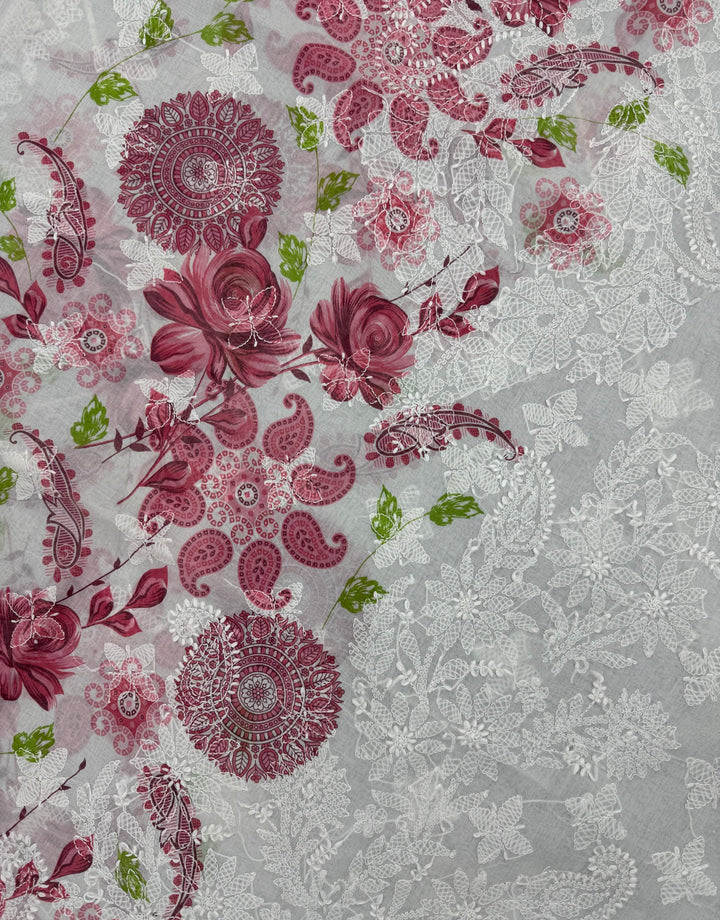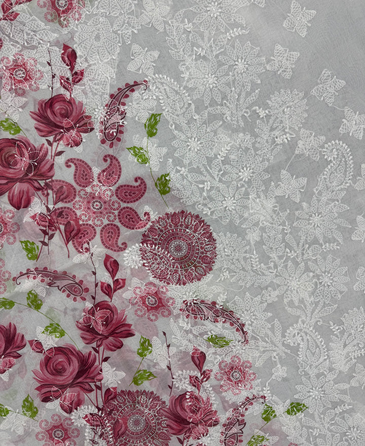 - Craft: Immerse yourself in the beauty of this enchanting Chikankari Kurta with exclusive Digital Printing. One side of the Kurta has delicate White Chikankari embroidery all-over it, a beautiful neckline in mid contemplated with Digital Printing in bright hues on the other side making this Kurta an absolute class. The back of the Kurta has floral motifs on it accompanied by separate embroidered sleeves.