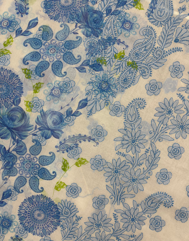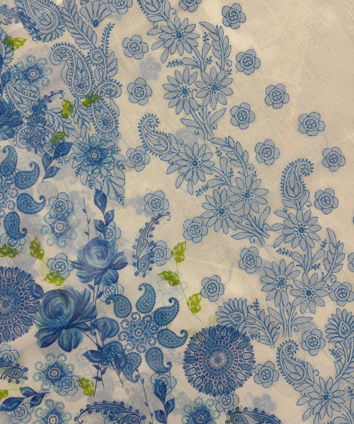 - Craft: Immerse yourself in the beauty of this enchanting Chikankari Kurta with exclusive Digital Printing. One side of the Kurta has delicate Chikankari embroidery all-over it, a beautiful neckline in mid contemplated with Digital Printing in bright hues on the other side making this Kurta an absolute class. The back of the Kurta has floral motifs on it accompanied by separate embroidered sleeves.