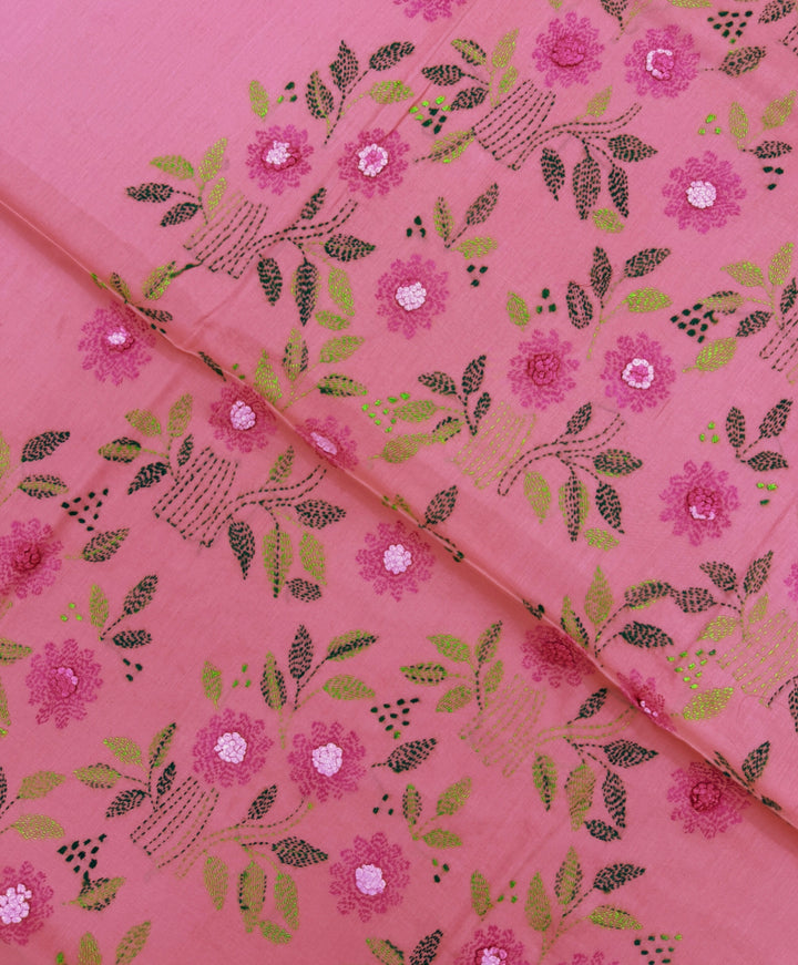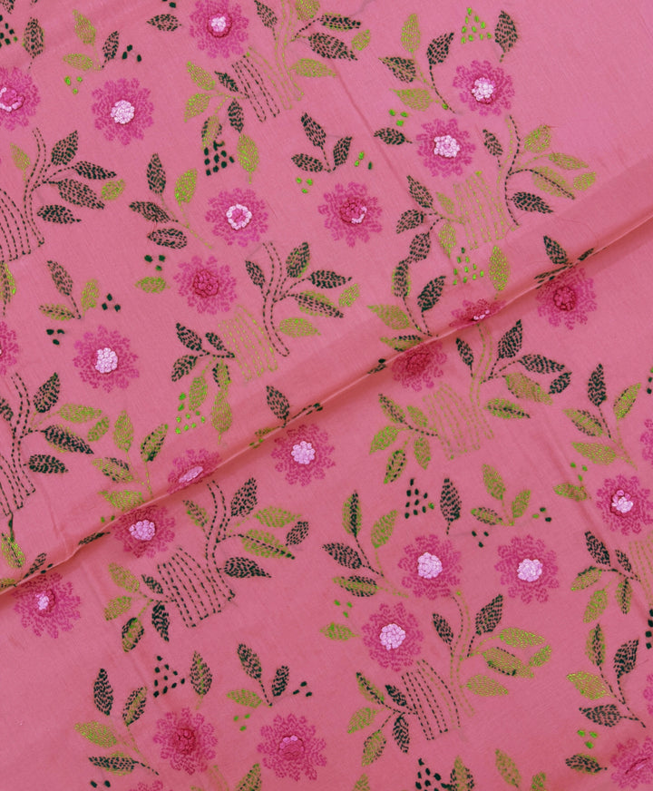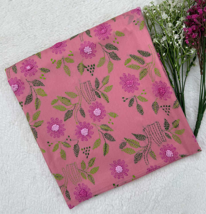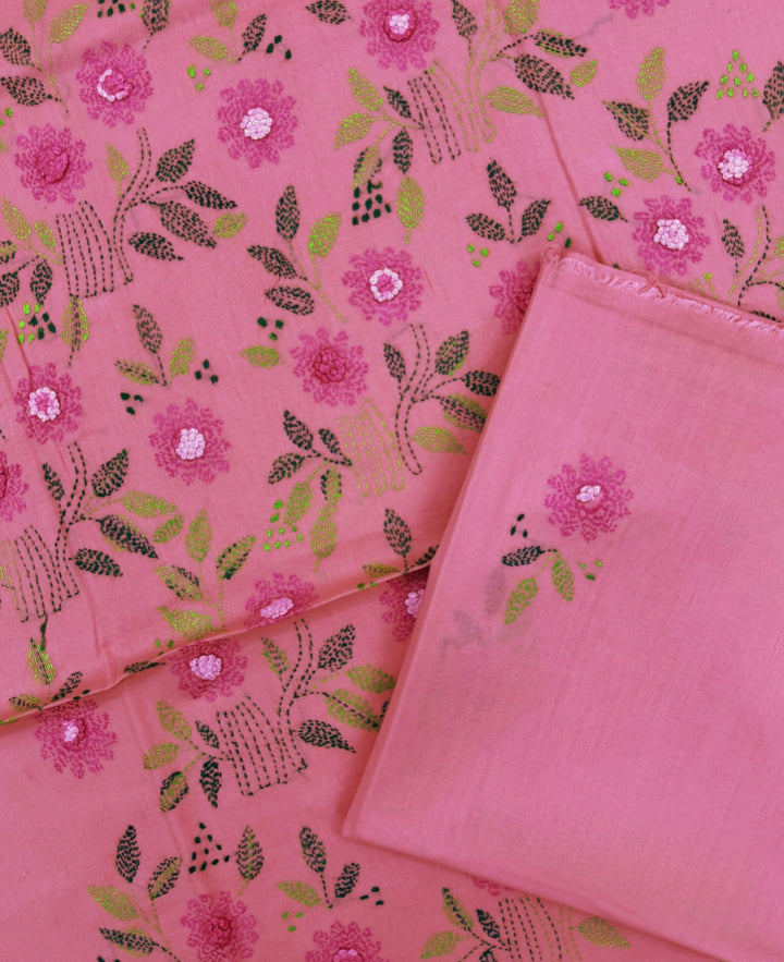 Shirt has an embroidery which is a fusion of Kacha tanka and French Knot work. Dupatta has floral motifs spray all-over it, accompanied with a plain matching trouser. - Fabric: Pure Lawn